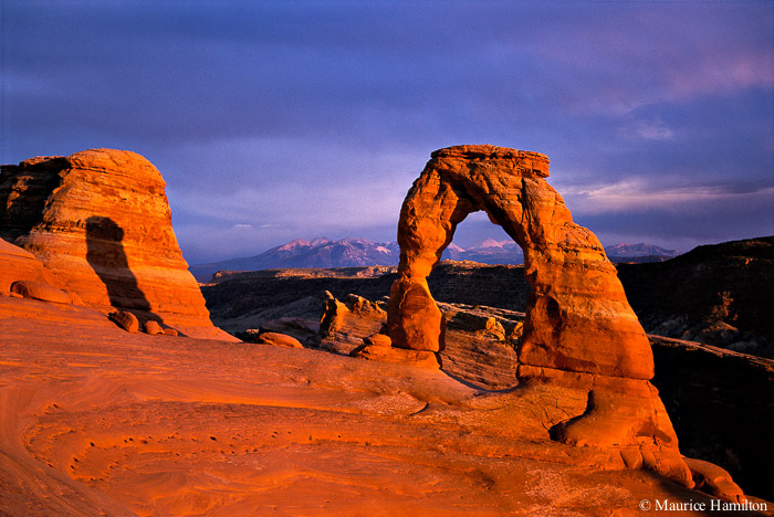 Delicate Arch, La Sal Mountains at Sunset, Arches National Park, Utah